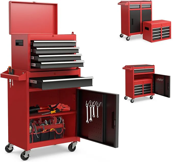 ��Tool Chest with Detachable Tool Box��Overall Dimension: 23.5�� x 11�� x 40�� (L x W x H) The tool cabinet consists of 5 drawers. two trays. a large bottom cabinet and a top box. The whole storage cabinet can be detached into a box and a rolling tool chest. which can be used separately or together according to your requirement. When not in use. the tool box can be stored in lower chest for saving space.