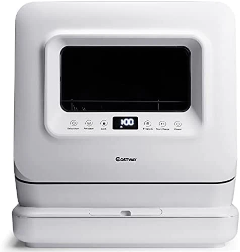 COSTWAY Portable Countertop Dishwasher, with 7.5L Openable Water Tank, Inlet Hose, 360��Dual Spray Arms, 5 Washing Programs, 24H Air-Dry Function, Child Lock, Dishwasher Machine for Small Apartment, RV